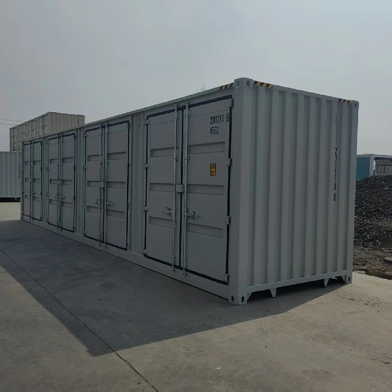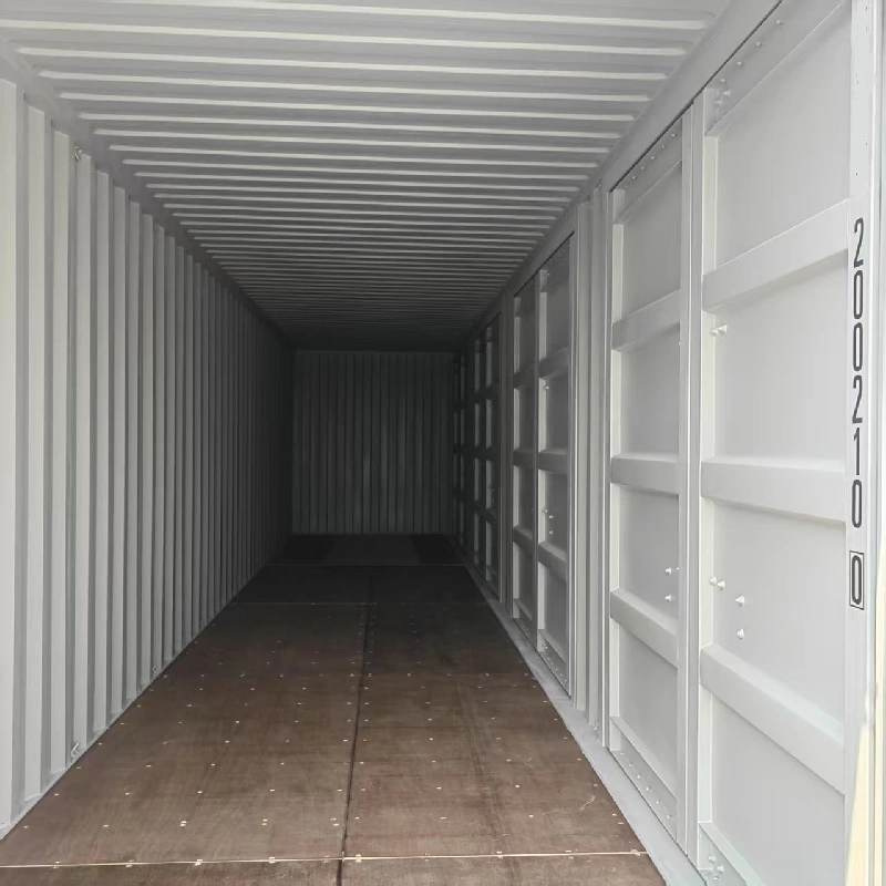 40 jalan korkea kuutiosäiliö, jossa on 4 sivuovea Lisäksi sivu avaamissuunnittelu mahdollistaa tavaroiden nopeamman lastauksen ja purkamisen; Se tarjoaa enemmän näkökulmia tavaroiden tarkistamiseksi kontin sisällä; Jos varustetaan joitain varavarusteita, kuten osiosarjoja, se voidaan helposti muuttaa säiliöksi, jolla on erilaiset funktionaaliset vyöhykkeet. Sivuovi on myös irrotettava, ja lisäämällä muita varavarusteita, kuten lasiovia, ikkunoita ja kaiteita, se voidaan muuttaa helpommin taloon.